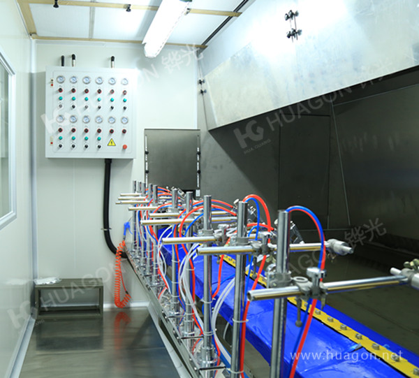 上料-手動靜電除塵-素材預(yù)熱-自動靜電除塵-自動噴涂-靜置-烘烤-冷卻-下料